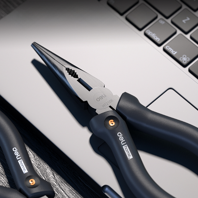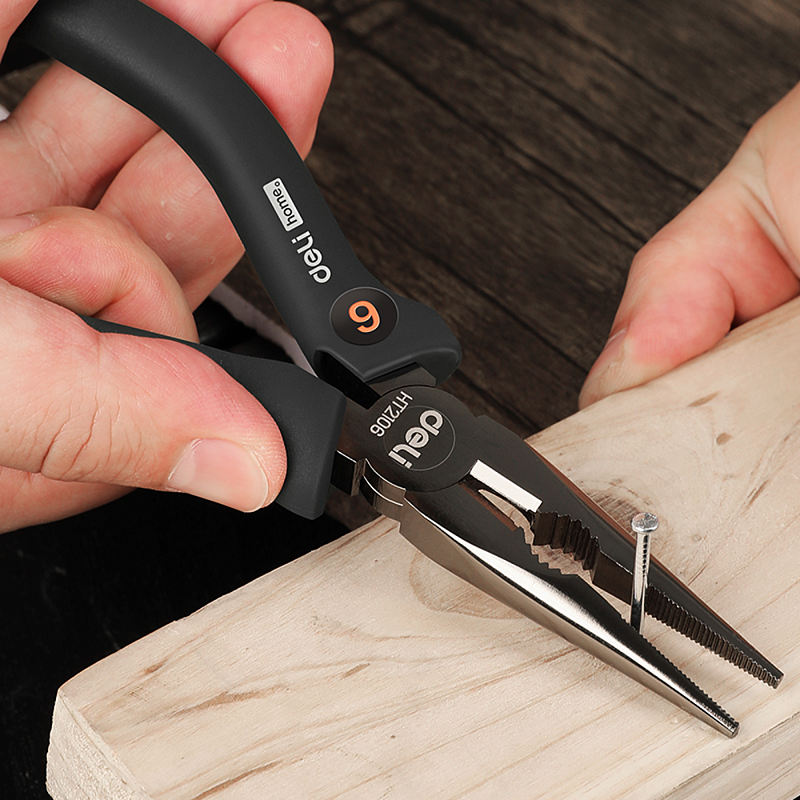 Длинногубцы Deli HS EHT2106, 160 мм, Soft Touch, черный