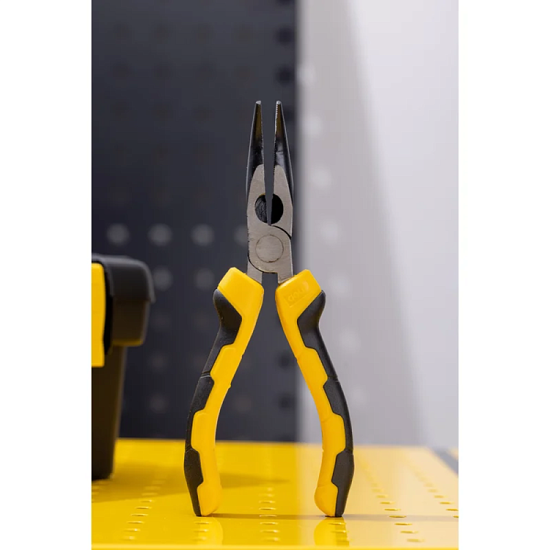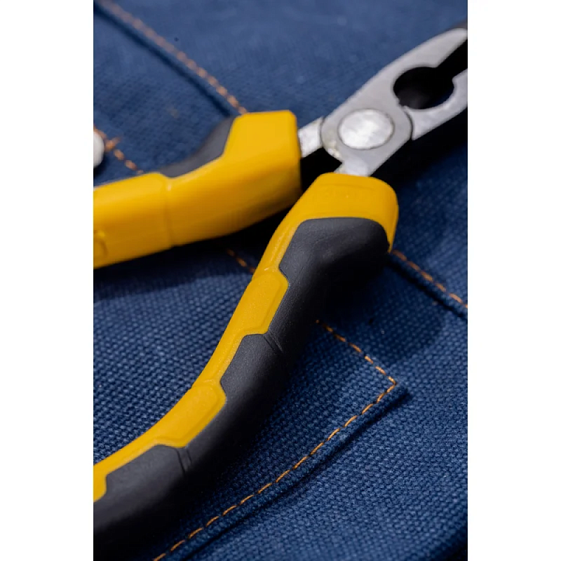 Рукоятки плоскогубцев выполнены из двухкомпонентного материала, что обеспечивает надежный хват и удобство использования.