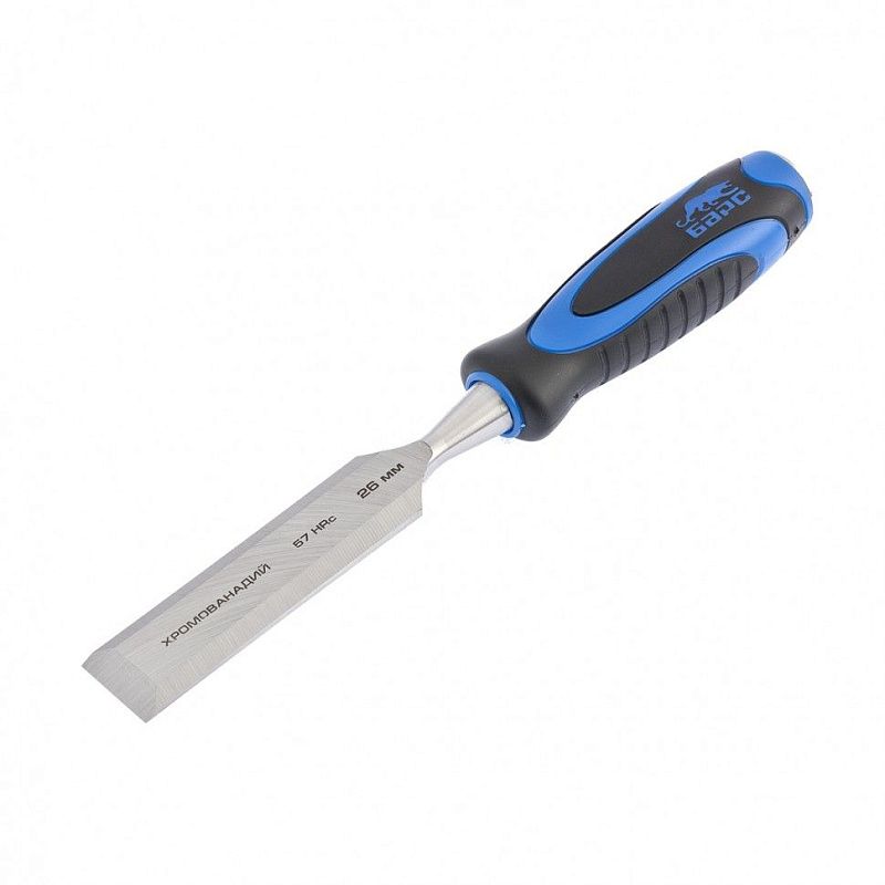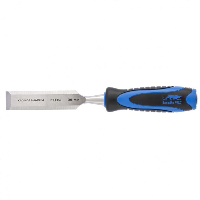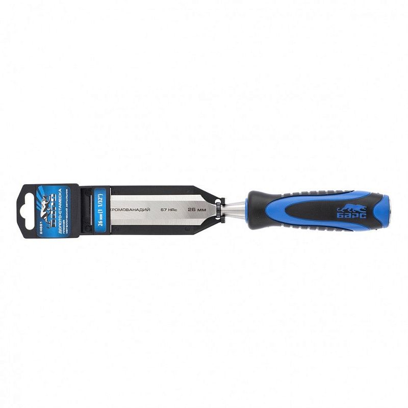Долото-стамеска, плоская, 26 мм, двухкомпонентная рукоятка, металлический затыльник Барс 24651, описание:
