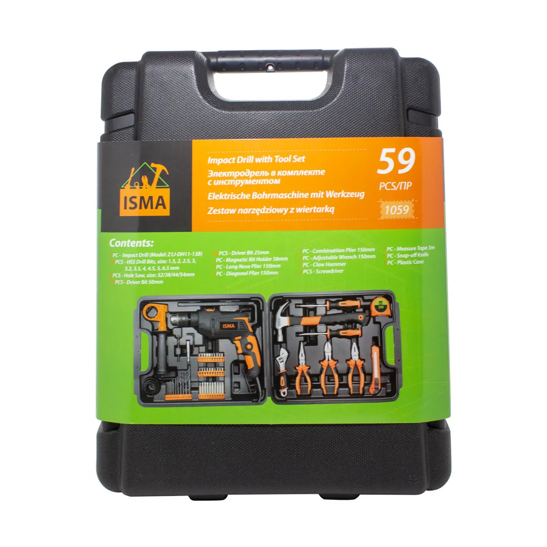 Набор инструментов с дрелью электрической, 59 пр., 220V, 750W, 0-2900 об/мин ISMA ISMA-1059