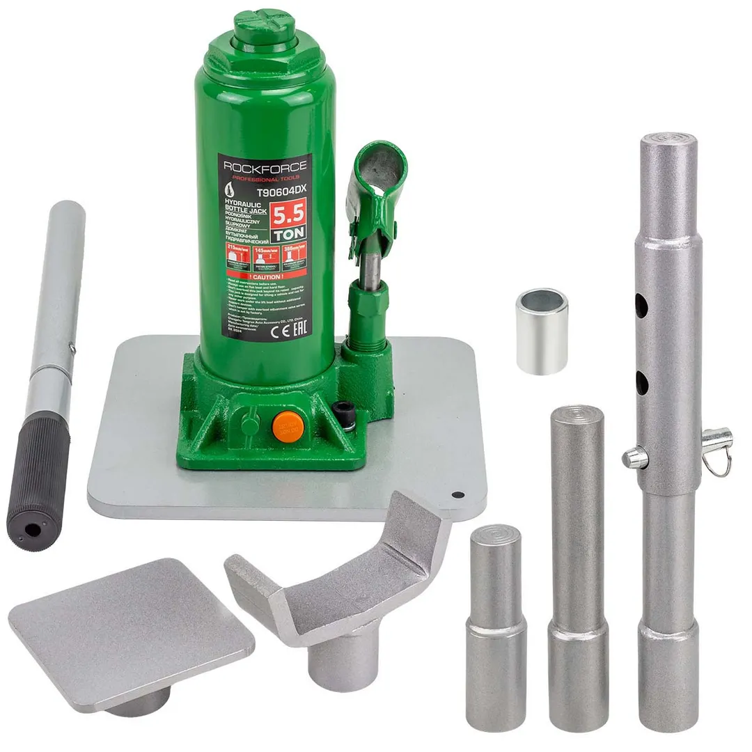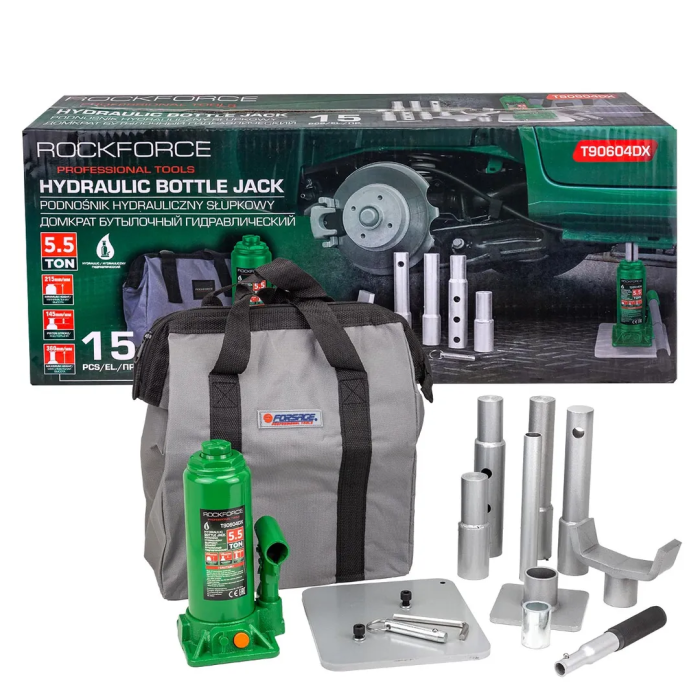 Домкрат бутылочный гидравлический 5,5 т, 215-960 мм, с набором аксессуаров RockForce RF-T90604DX