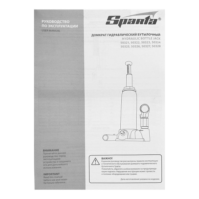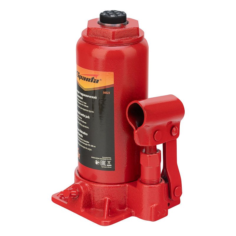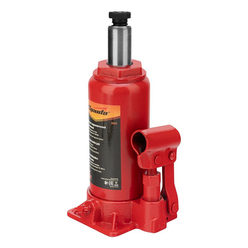 Домкрат гидравлический бутылочный, 5 т, h подъема 195-380 мм Sparta 50323, описание: