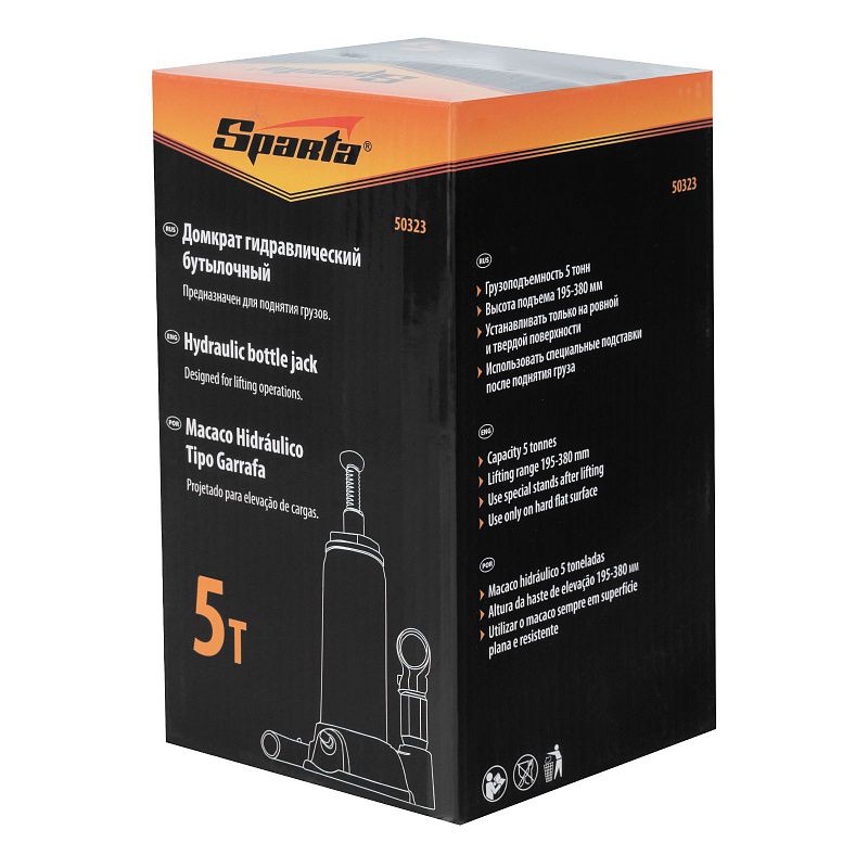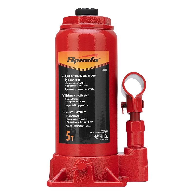 Домкрат гидравлический бутылочный, 5 т, 195-380 мм Sparta 50323