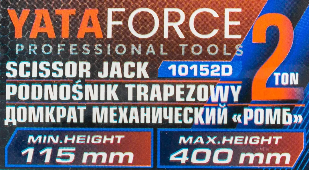 Домкрат механический ''ромб'' 2 т, 115-400 мм, L-420 мм в водоотталкивающем чехле YATAFORCE YF-10152D, описание и характеристики: