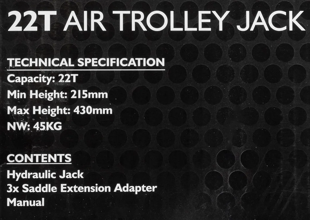 Домкрат пневмогидравлический подкатной 22 т, 215-430 мм JCB JCB-TQ22001, описание и характеристики: