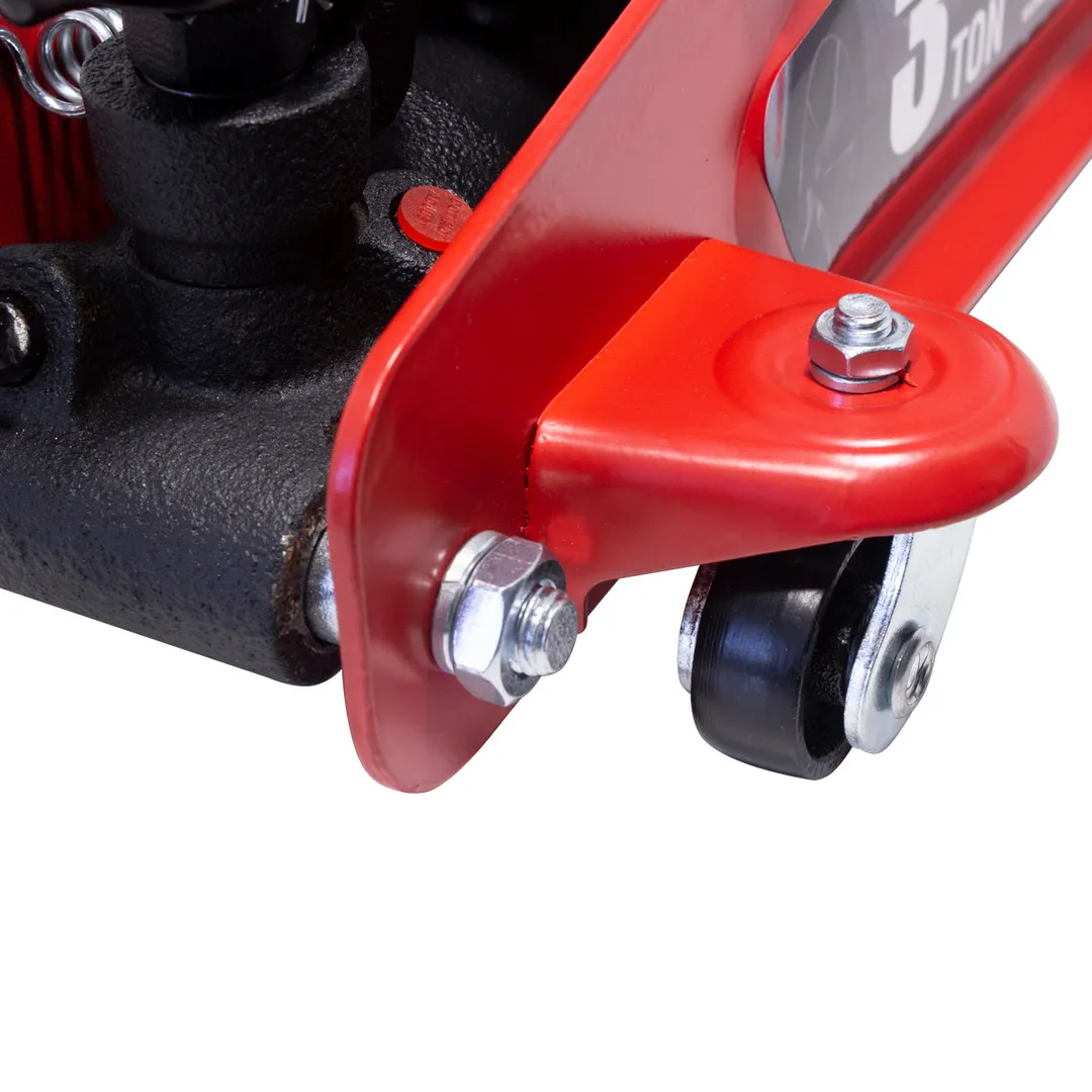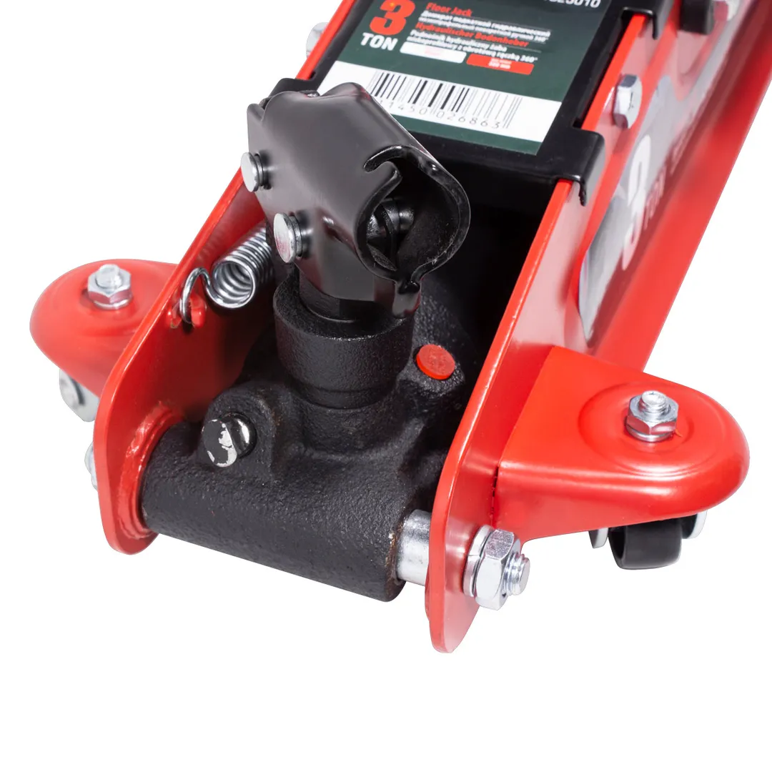 Домкрат подкатной гидравлический 3т идеально подходит для ежедневного использования в автомастерской, на шиномонтаже или в гараже.Прочный гидравлический блок с поршневым насосом обеспечивает быстрый подъем автомобиля без особых усилий.