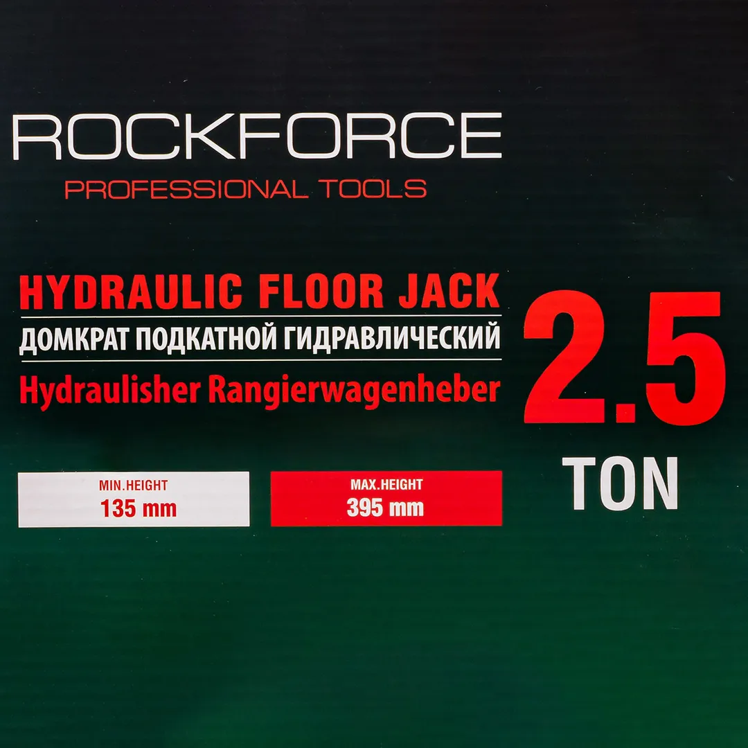 Домкрат подкатной гидравлический ''Компакт'' 2,5 т, 135-395 мм, для кроссоверов и микроавтобусов RockForce RF-TR20005, описание и характеристики: