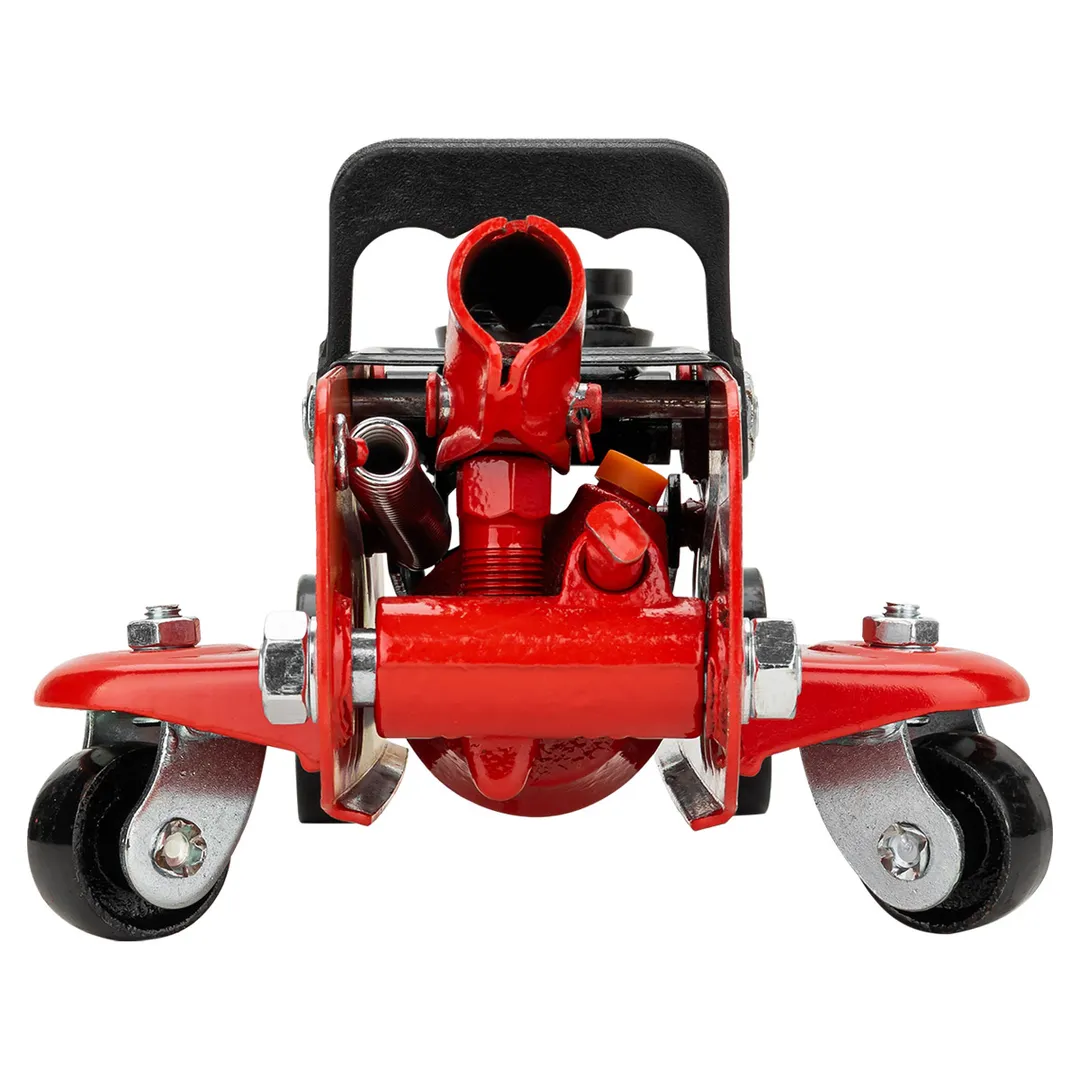 Домкрат оснащен 2 фиксированными и 2 поворотными колесами, поэтому его можно легко перемещать.