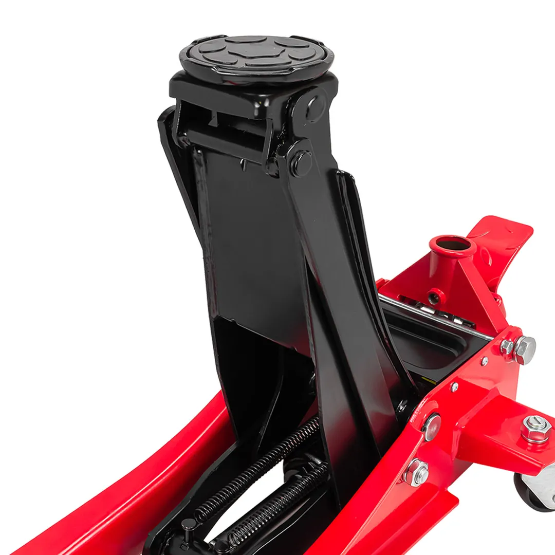 Домкрат подкатной гидравлический двухпоршневой 3,5т низкопрофильный с прорезиненной накладкой на рукоятке имеет высоту подхвата от 80 мм и максимальную высоту подьёма 495 мм.Это позволяет использовать его для подъема различных типов автомобилей, включая низкопрофильные модели.