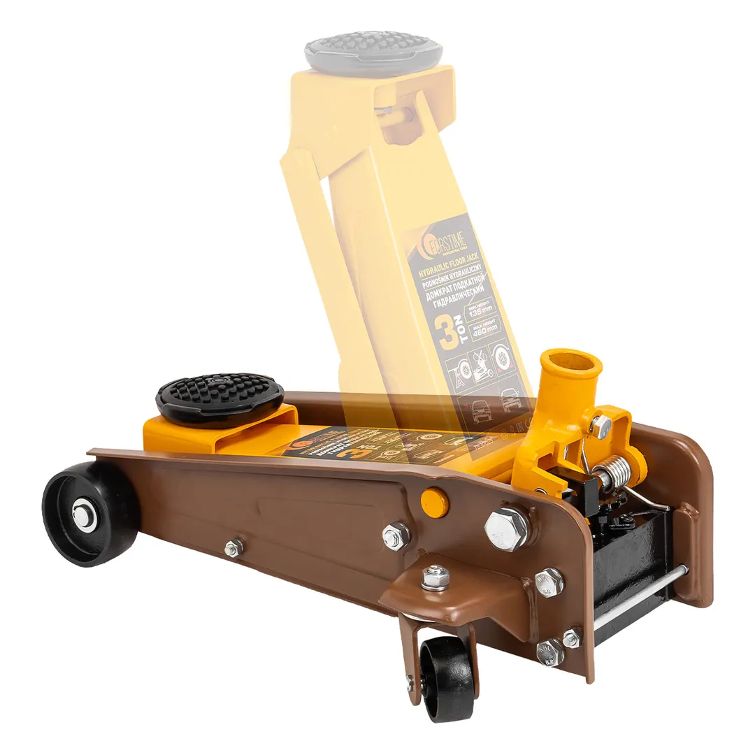 Домкрат подкатной гидравлический 3 тонны.Высота подхвата 135 мм, максимальная высота подъема 460 мм.