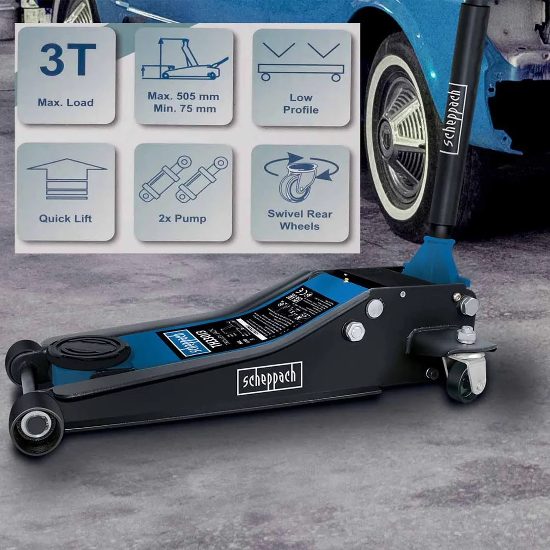 Домкрат подкатной гидравлический 3 т, 75-505 мм Scheppach SCH-TH33013, описание и характеристики: