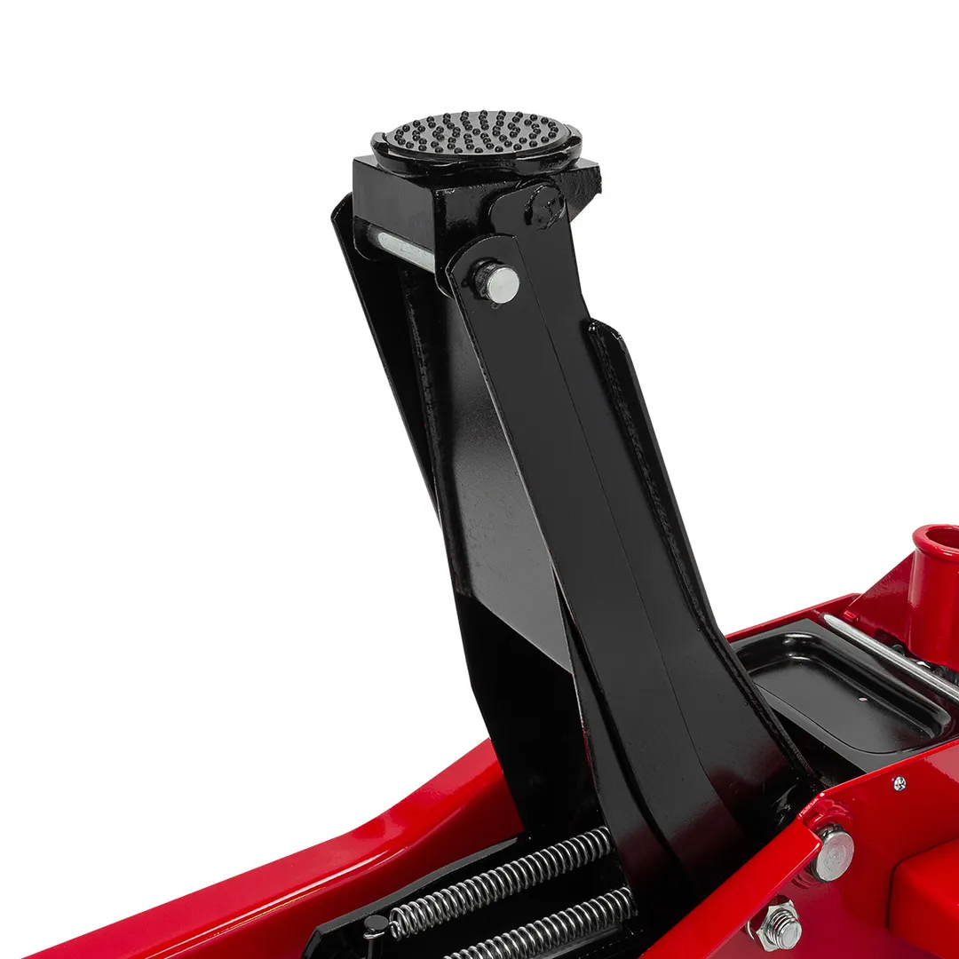 Домкрат подкатной гидравлический двухпоршневой 3т низкопрофильный с прорезиненной накладкой на рукоятке имеет высоту подхвата от 75 мм до 510 мм.Это позволяет использовать его для подъема различных типов автомобилей, включая низкопрофильные модели.