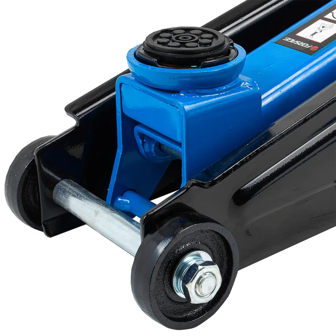 Домкрат оснащен 2 фиксированными и 2 поворотными колесами, поэтому его можно легко перемещать.