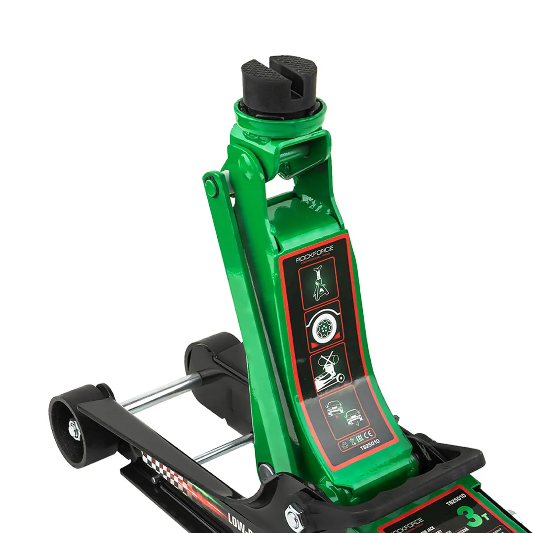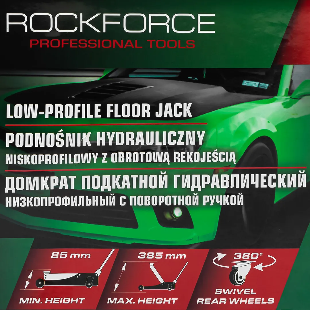 Домкрат подкатной гидравлический низкопрофильный 3 т, усиленный корпус,поворотная ручка 360°, 85-380 мм RockForce RF-T825010, описание и характеристики: