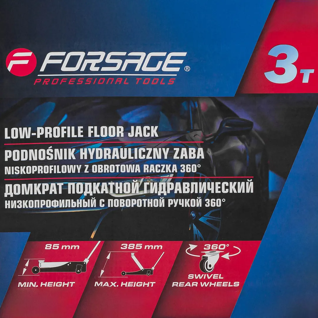 Домкрат подкатной гидравлический 3 т, 85-385 мм низкопрофильный с поворотной ручкой Forsage F-TR8154