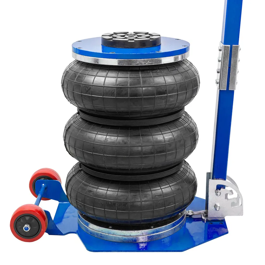 Профессиональный 3-камерный пневматический домкрат позволяет производить быстрый демонтаж и установку колес легковых автомобилей, а также необходимый местный ремонт подвески, узлов рулевого управления и тормозной системы.Домкрат подкатной пневматический имеет грузоподъемность 5 тонн и рассчитан на подключение к компрессору, подающему сжатый воздух под давлением от 4 до 8 бар.