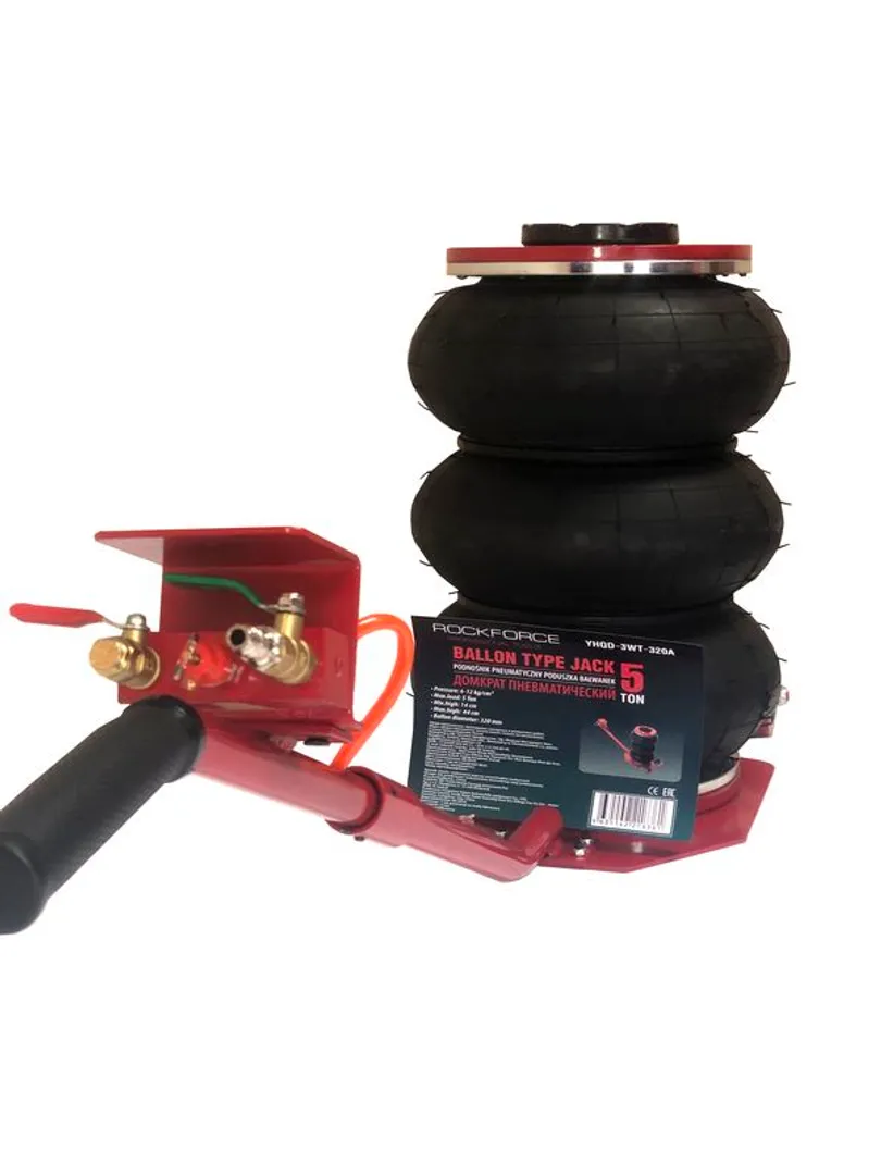 Домкрат подкатной пневматический 5 т, 6-12bar, 144-440 мм, 3 подушки, Ø320 мм RockForce RF-YHQD-3WT-320A, описание и характеристики: