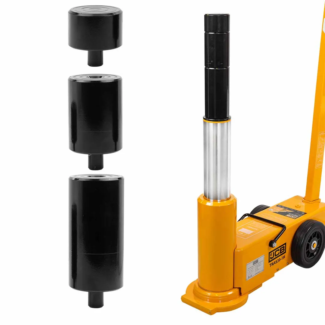 Домкрат также оснащен сменными удлинителями длиной 50, 100 и 150 мм,что позволяет легко отрегулировать высоту в соответствии с потребностями.