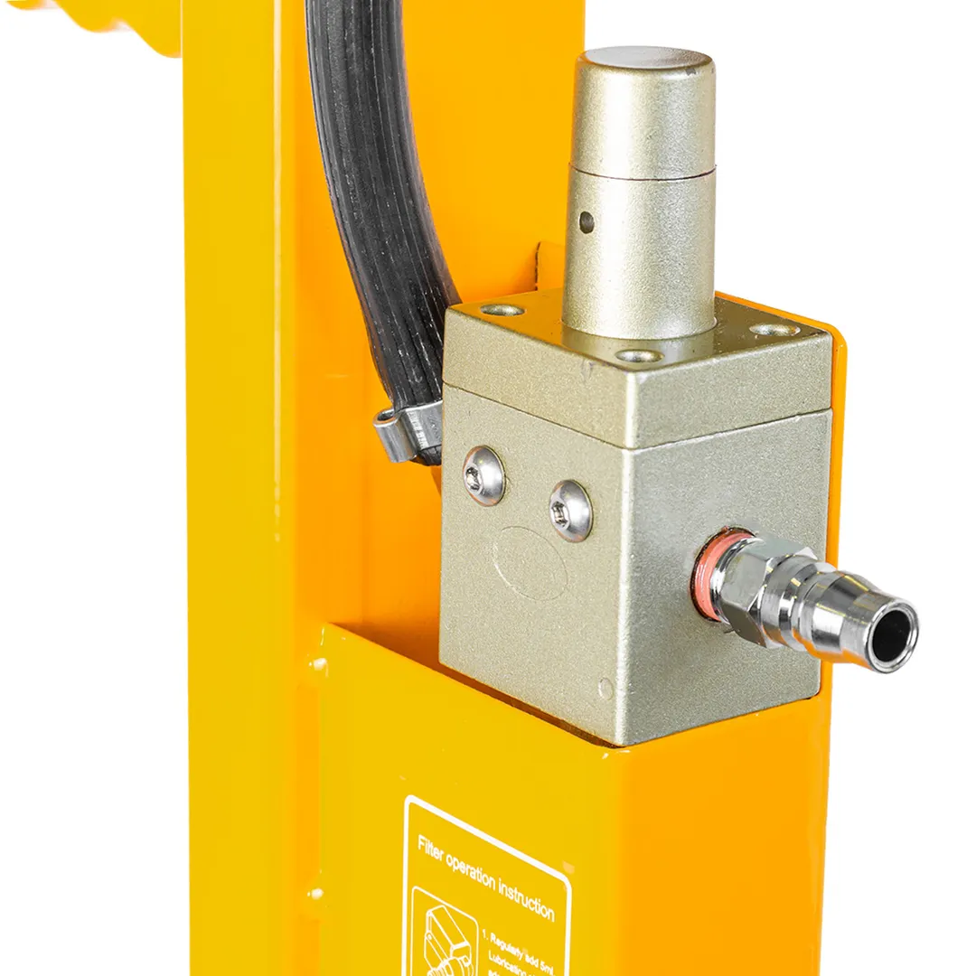 Ручка домкрата оборудована штуцером под быстросьем USA-типа, фильтром для воздуха и рычагом для поднятия/опускания штока.