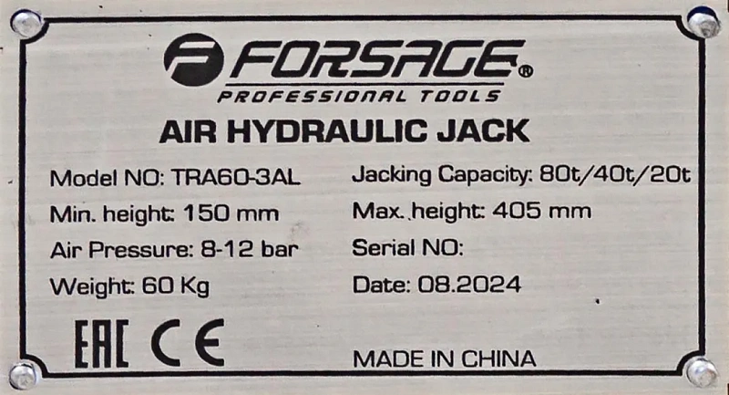 Домкрат подкатной пневмогидравлический 80 т, 150-405 мм Forsage F-TRA60-3AL (из 2-ух частей)