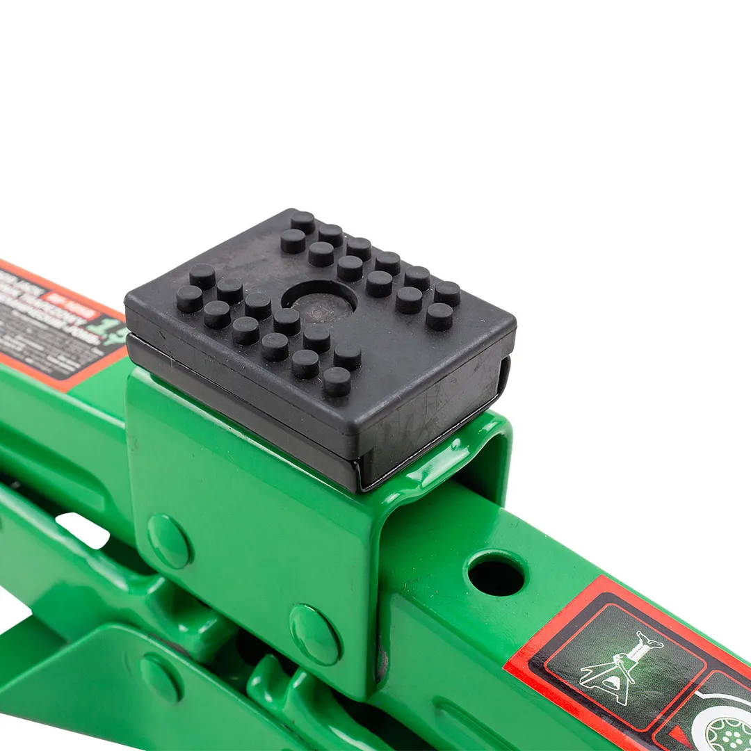 Вид домкрата"ромб"с резиновой накладкой. Механизм механический. Грузоподъемность 1,5 тонны. Минимальная высота подъема 110 мм. Максимальная высота подъема 393 мм. Длина 415 мм.