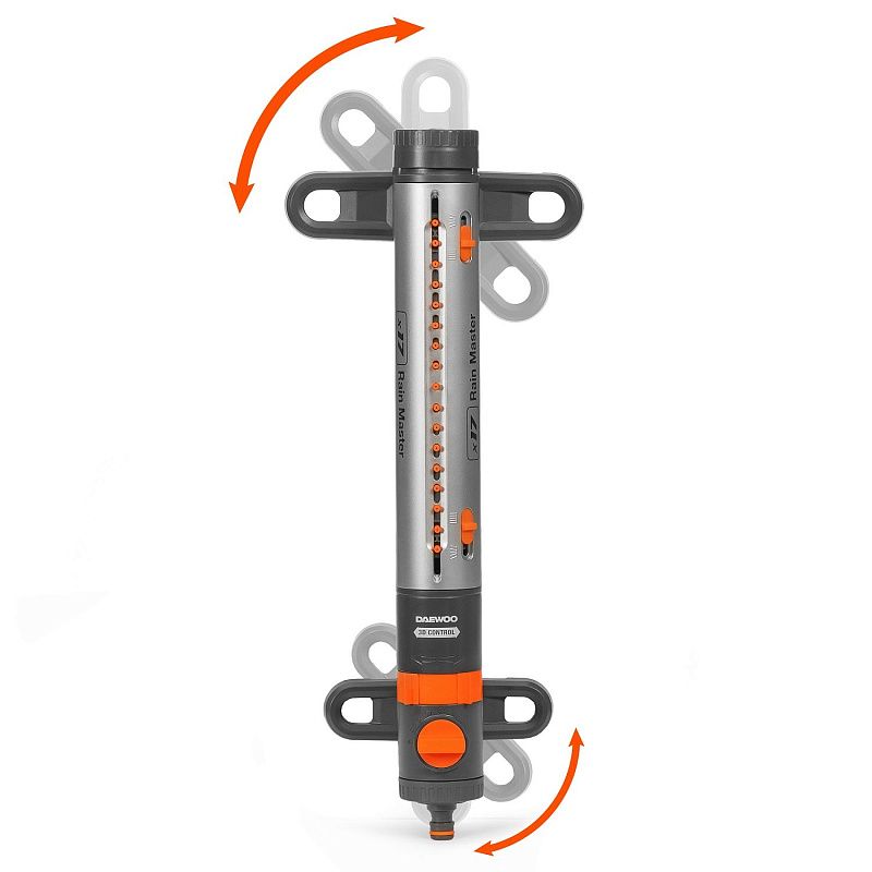 - Система 3D CONTROL. Удобные регуляторы позволяют настроить угол наклона форсунок, направление их движения и дальность струи, чтобы полить определенный сектор или заданную площадь от 90м² до 320м².