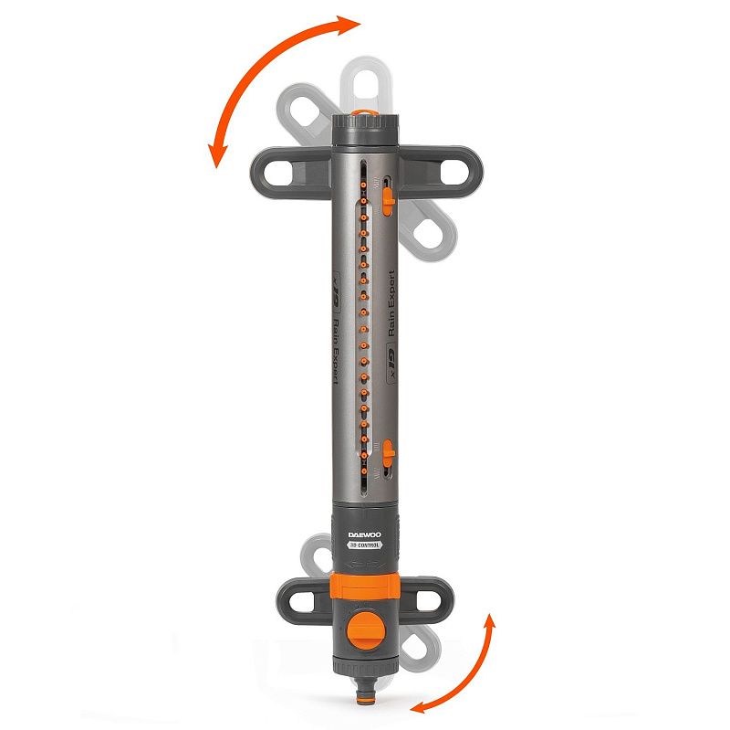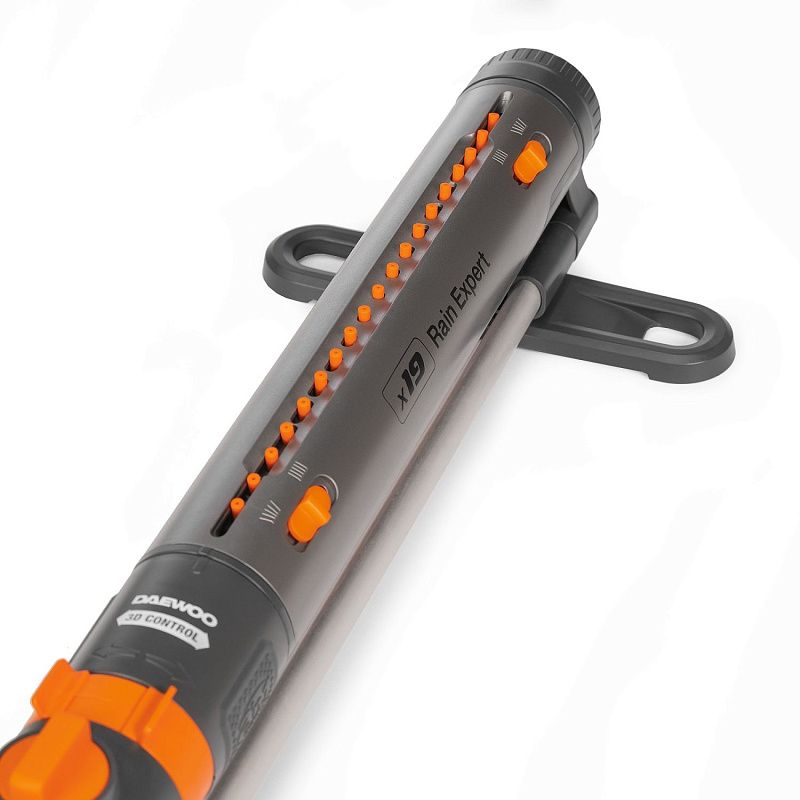 - Система 3D CONTROL. Удобные регуляторы позволяют настроить угол наклона форсунок, направление их движения и дальность струи, чтобы полить определенный сектор или заданную площадь от 90м² до 350м².