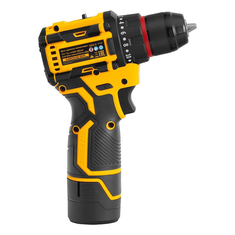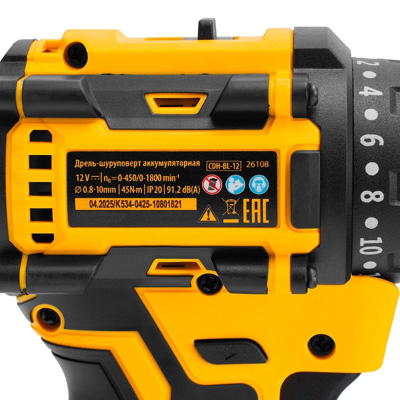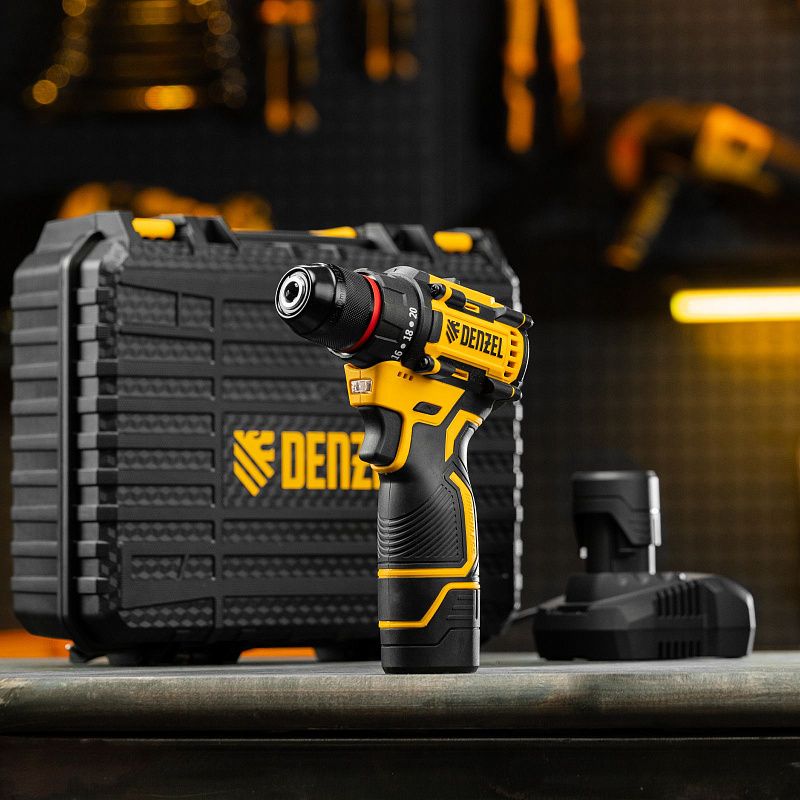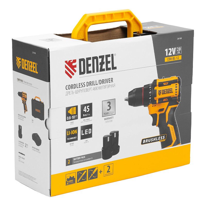 Дрель-шуруповерт аккумуляторная бесщет. CDH-BL-12, Li-Ion, 12 В Denzel 26108, описание: