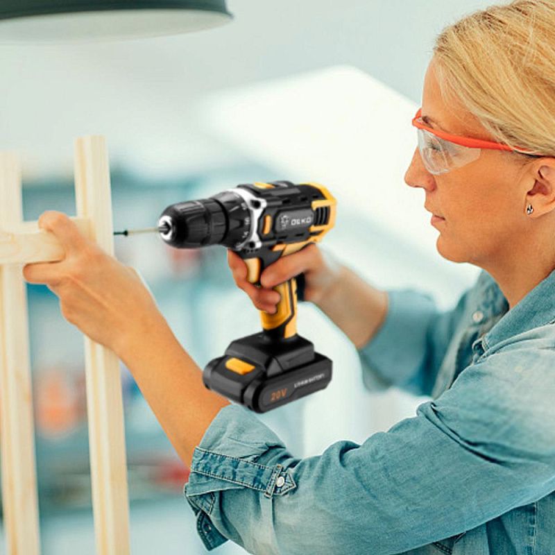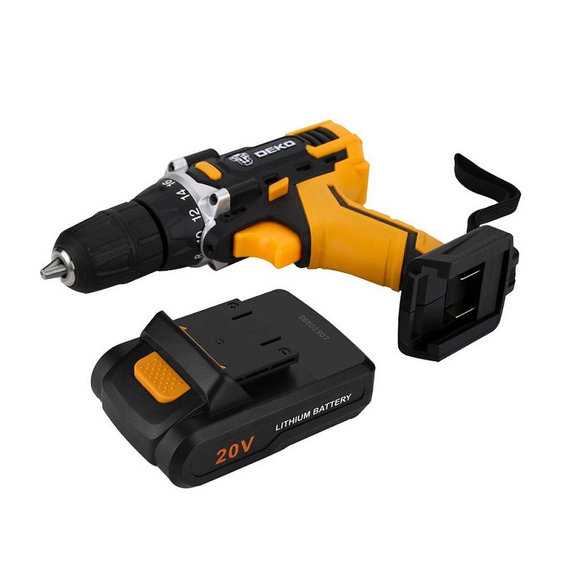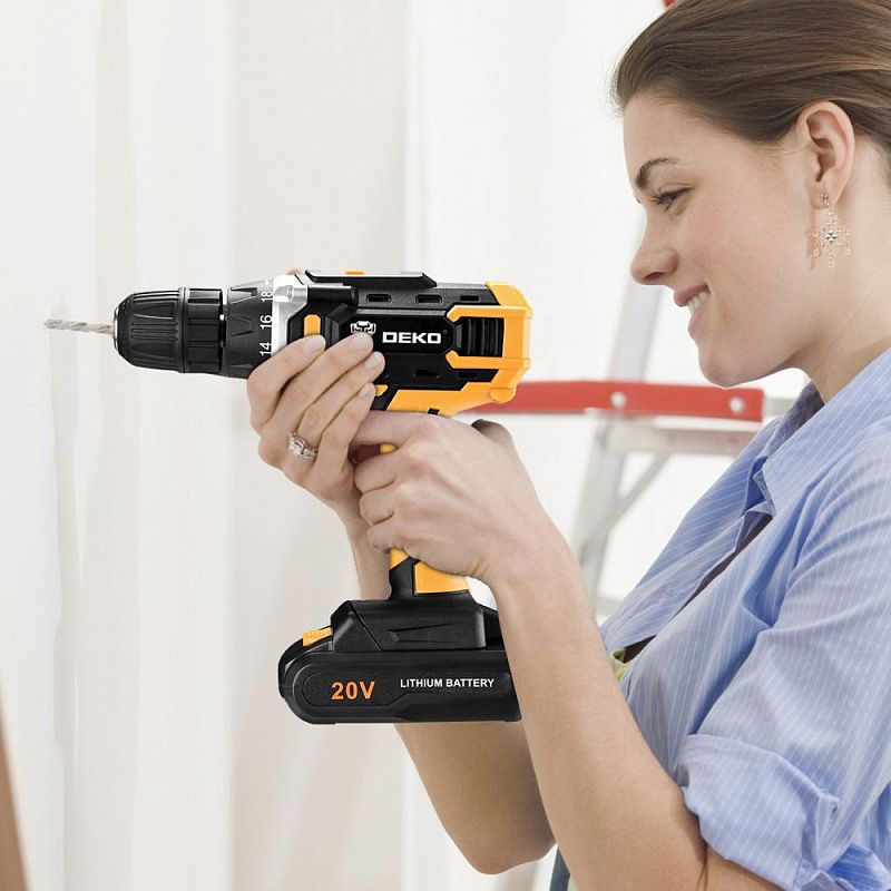 - Аккумуляторная дрель Deko DKCD20FU-Li используется при строительных, слесарно-монтажных работах. Помогает быстро высверливать отверстия нужного диаметра как на деревянной, так и металлической поверхности, быстро вкручивать или извлекать крепеж.