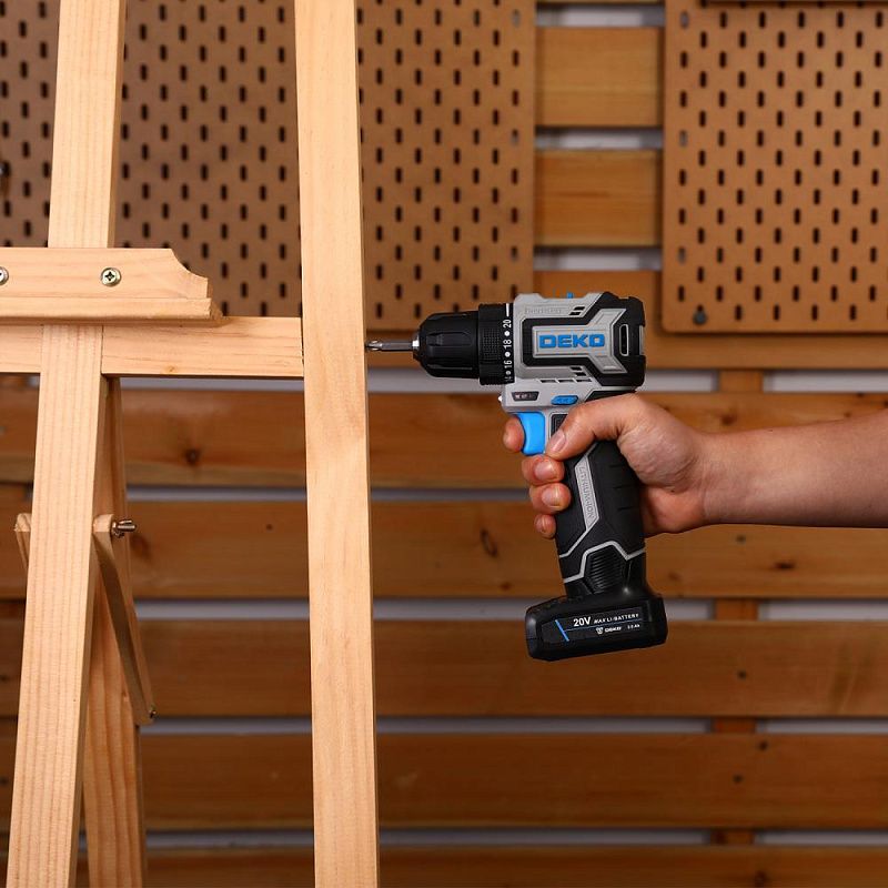 - Дрель-шуруповерт аккумуляторная бесщеточная компактная DEKO Sharker 20V PRO имеет бесщёточный двигатель, что обеспечивает эффективность и производительность.