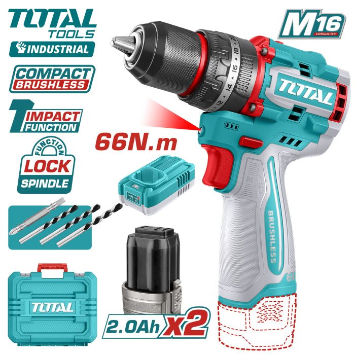 Дрель-шуруповерт ударная TOTAL TIDLI166062, описание: