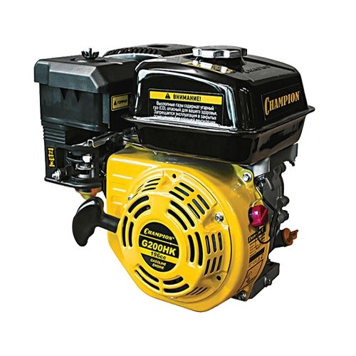 Двигатель Champion G200HK – четырехтактная модель с верхним расположением клапанов для применения на мотоблоках, культиваторах, снегоуборочных машинах, виброплитах и на другой садовой или строительной технике.