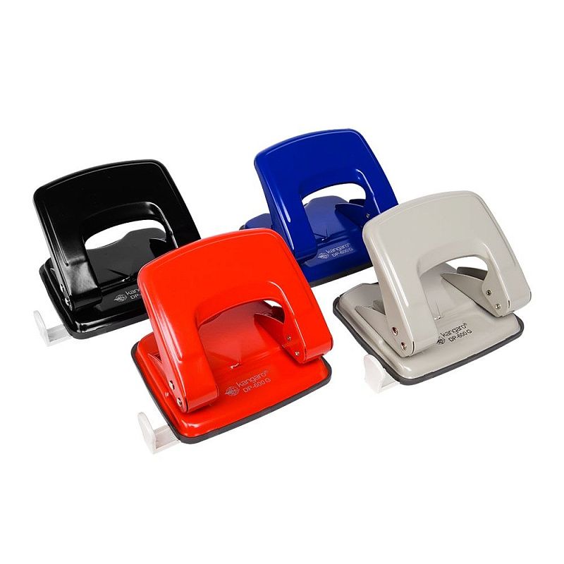 Полностью металлический дырокол Kangaro DP-600G с пластмассовым контейнером для конфетти. Линейка деления на форматы прикреплена к резервуару и снимается вместе с резервуаром. Пластмассовая выемка на резервуаре позволяет легко отделять и очищать его.