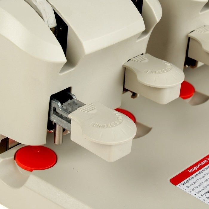 - Пробивает стопу в 150 листов (16 мм) плотностью 80 г/м².