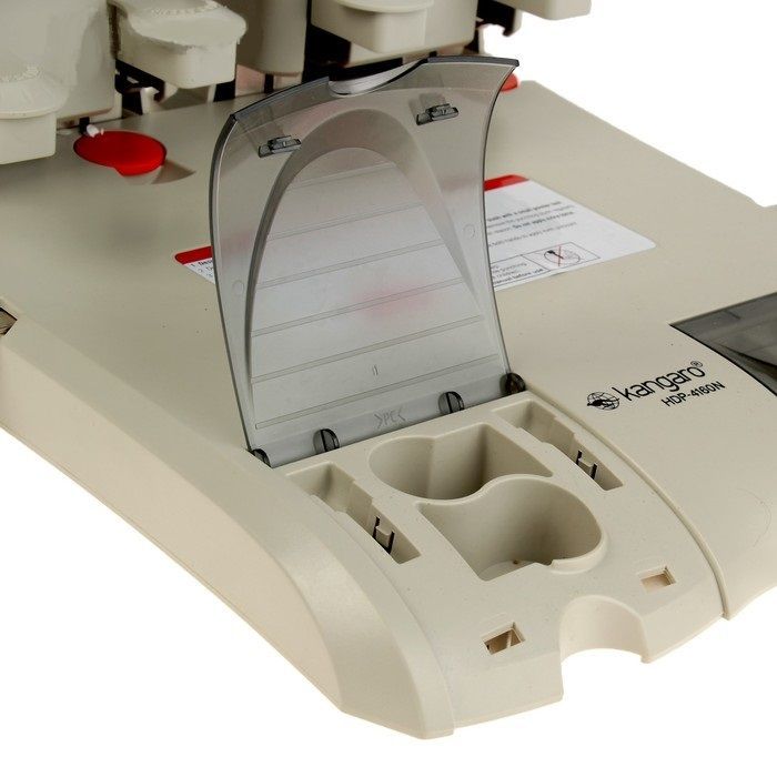 Мощный настольный дырокол Kangaro HDP-4160N на 4 отверстия. Прорезиненная ручка обеспечивает супер-комфортное использование. Уникально спроектированный механизм пробивает за один раз стопу в 150 листов и идеально подойдет для подшивки периодических изданий или объемных документов. Подходят ножи артикул веб. 968691. Диски артикул веб. 964158.