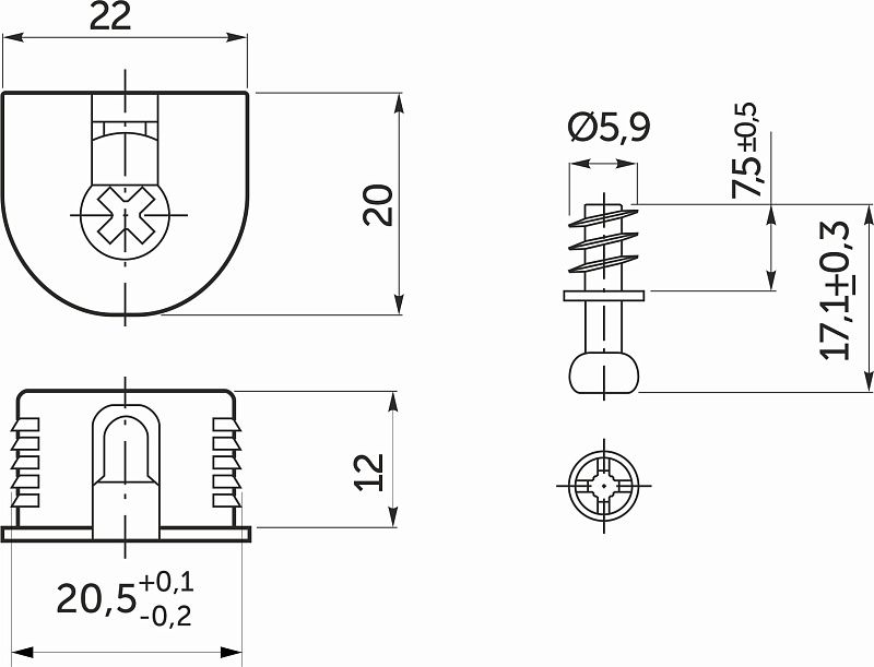 Эксцентриковая стяжка быстрого монтажа (еще ее называют стяжкой для полок, полкодержателем или «рафиксы») в пластиковом корпусебежевого цветаидет в комплекте со штоком с евро –винтом для вкручивания непосредственно в ДСП. На некоторых фабриках такой вид крепежа называется полкодержателем, так как предназначен только для горизонтальных деталей. Горизонтальные полки, собранные с использованием этих стяжек дополнительно стягивают соединение, что усиливает жесткость всего каркаса мебели. Многократный демонтаж и монтаж мебели на подобный крепеж не приводит к износу соединений.Технические характеристики: