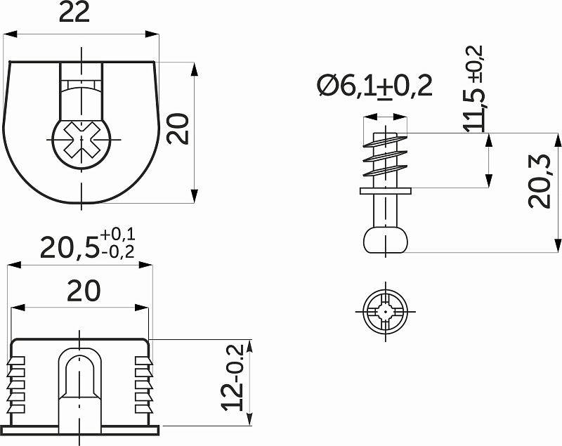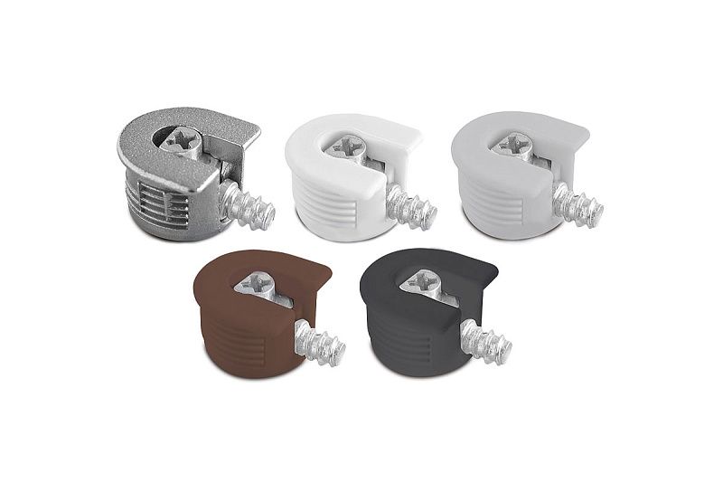 Эксцентриковая стяжка быстрого монтажа (еще ее называют стяжкой для полок, полкодержателем или «рафиксы») в пластиковом корпусебежевого цветаидет в комплекте со штоком с евро –винтом для вкручивания непосредственно в ДСП. На некоторых фабриках такой вид крепежа называется полкодержателем, так как предназначен только для горизонтальных деталей. Горизонтальные полки, собранные с использованием этих стяжек дополнительно стягивают соединение, что усиливает жесткость всего каркаса мебели. Многократный демонтаж и монтаж мебели на подобный крепеж не приводит к износу соединений.Технические характеристики: