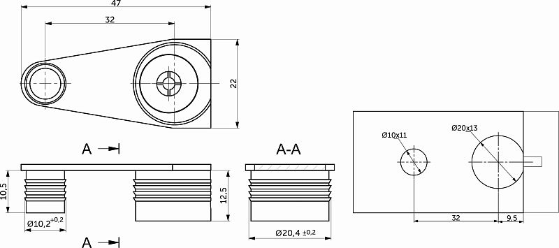 Эксцентриковая стяжка быстрого монтажа с аутригером 20 мм и 10 мм белая + шток 6*11мм, уп/0,1тыс.шт, AKS 122995, технические характеристики: