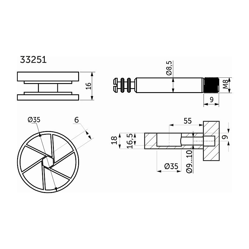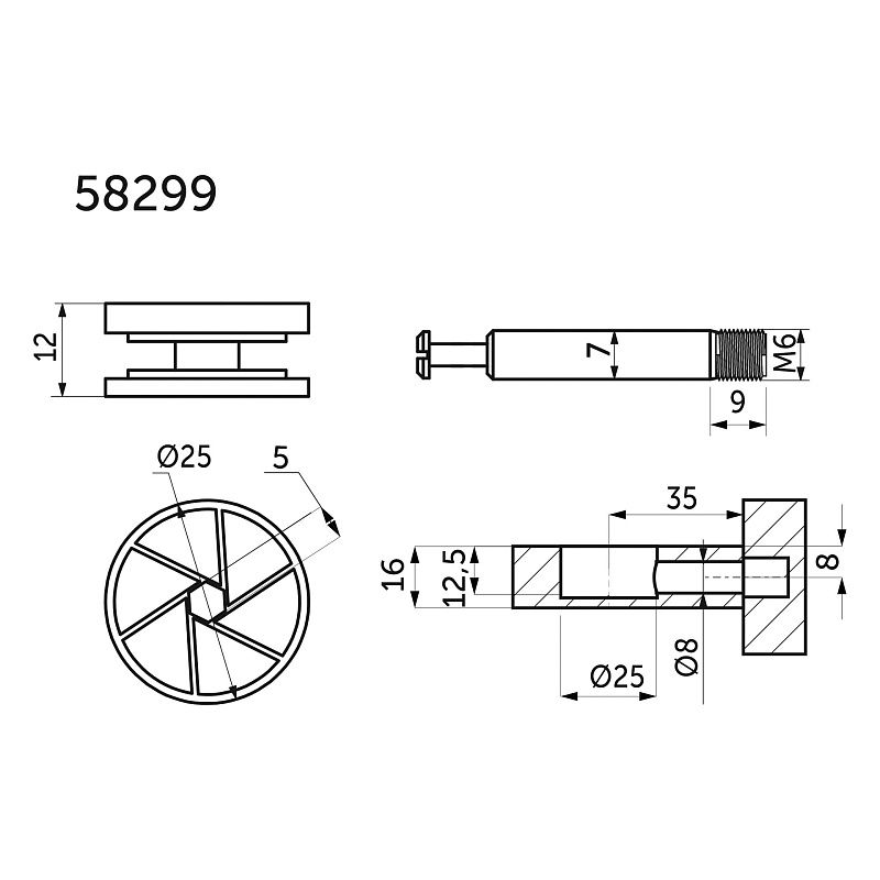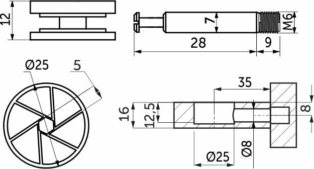 Усиленная эксцентриковая стяжка или "Maxifix"с диаметром эксцентрика 25 мм (толщина эксцентрика 12 мм для панелей от 16 мм). Данные стяжки состоят из непосредственно самого эксцентрика и штока соответствующего размера (со стяжкой диаметром 25 мм применяется шток с рабочей длиной 28 мм и резьбой М6). У данного изделия увеличенный диапазон затяжки и повышенный затягивающий момент, которые призваны обеспечивать надежное соединение, которое достигается с помощью использования штоков с метрической резьбой под муфту (футорку). Данные стяжки могут дополнительно комплектоваться заглушками соответствующего диаметра. Усиленная эксцентриковая стяжка имеет увеличенную нагрузку на разрыв, обеспечивает надежную фиксацию и особенно хорошо подходит для соединений, постоянно находящихся под большой нагрузкой (например она применяется для изготовления кроватей, прилавков, и т. д. ). 33251 используется с муфтой код6231658299используется с муфтой код62317Технические характеристики: