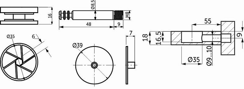 Усиленная эксцентриковая стяжка или "Maxifix" с диаметром эксцентрика 35 мм (толщина эксцентрика 16 мм для панелей от 18 мм). Данные стяжки состоят из непосредственно самого эксцентрика и штока соответствующего размера (для стяжки 35 мм шток с рабочей длиной 48 мм и резьбой М8). У данного изделия увеличенный диапазон затяжки и повышенный затягивающий момент, которые призваны обеспечивать надежное соединение, которое достигается с помощью использования штоков с метрической резьбой под муфту (футорку). Данные стяжки могут дополнительно комплектоваться заглушками соответствующего диаметра. Усиленная эксцентриковая стяжка имеет увеличенную нагрузку на разрыв, обеспечивает надежную фиксацию и особенно хорошо подходит для соединений, постоянно находящихся под большой нагрузкой (например она применяется для изготовления кроватей, прилавков, и т. д. ). 33251 используется с муфтой код6231658299используется с муфтой код62317Технические характеристики: