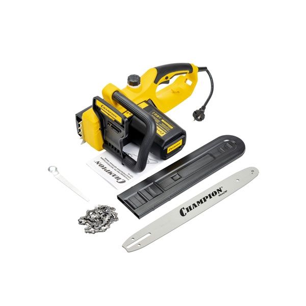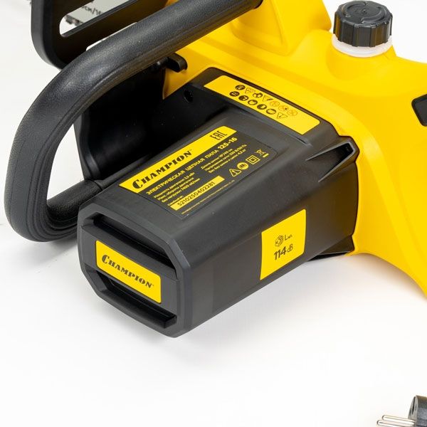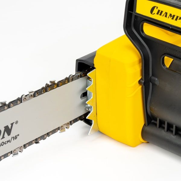Электропила CHAMPION 125-16 подходит для использования в домашних условиях при проведении строительных работ, а также для эксплуатации на садовых участках с целью спиливания деревьев или кустарников. Электропила имеет продольное расположение двигателя, который делает инструмент более удобным в использовании. Оснащена мощным двигателем 2,5 кВт и металлическими приводными шестернями, благодаря чему электропила позволяет выполнять тяжелые работы. Пила оборудована механическим тормозом цепи, который уменьшает возможность появления травмы из-за отскока. Эргономичная задняя рукоятка электропилы CHAMPION 125-16, под которой находится рычаг включения делает инструмент более удобным при эксплуатации. Электропила имеет крючок для провода для наибольшей компактности инструмента при его хранении. Инструмент оснащен безынструментальной натяжкой цепи для удобной и простой работы с электропилой. Пила оборудована устройством защиты от перегрузки - оно выключает электродвигатель при механической перегрузке (чрезмерное давление резания, защемление пильной шины в резе), либо при сбоях в системе электропитания.
