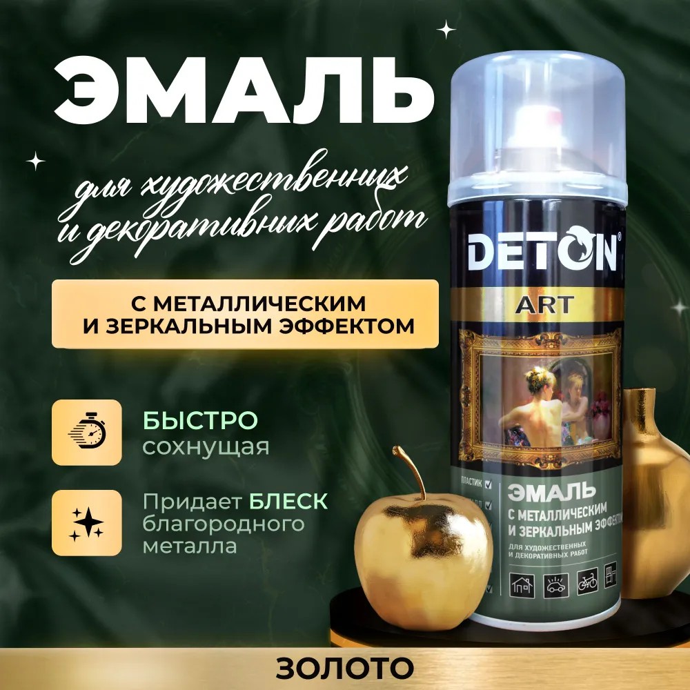 Эмаль в аэрозоле `Золотой декор` DETON ART DTN-A70735 с зеркальным и металлическим эффектом обеспечивает исключительный эстетический результат и способна придать практически любой поверхности блеск благородного металла. Идеально подходит для покраски картинных рам, декоративных украшений, произведений искусства и дорогостоящих деталей интерьера. Имеет яркий металлический блеск и весьма стойки к ультрафиолету.