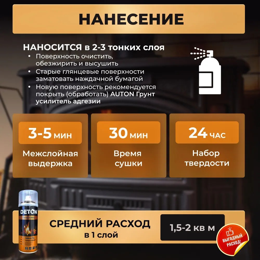Эмаль термостойкая Белая DETON THERMO DTN-A70789 - Универсальная термостойка эмаль предназначена для защитной покраски кирпичных, бетонных, металлических и других поверхностей трубопроводов, котлов, каминов, печей, мангалов, деталей двигателей, выхлопных и тормозных систем автомобилей.