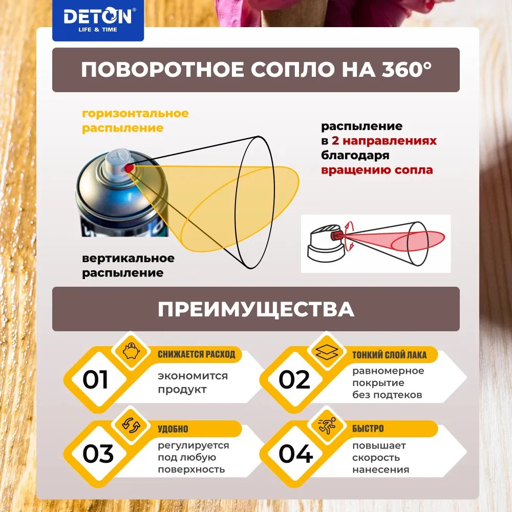 Перед применением тщательно встряхните баллон не менее 2-3 минут до появления отчётливого стука шариков внутри баллона. Сделайте пробное распыление в сторону.