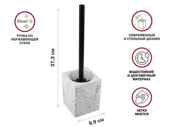 Ершик с подставкой STONEWAVE, белый, PERFECTO LINEA 35-130814