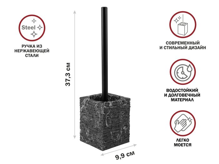 Ершик с подставкой STONEWAVE, черный, PERFECTO LINEA 35-130804