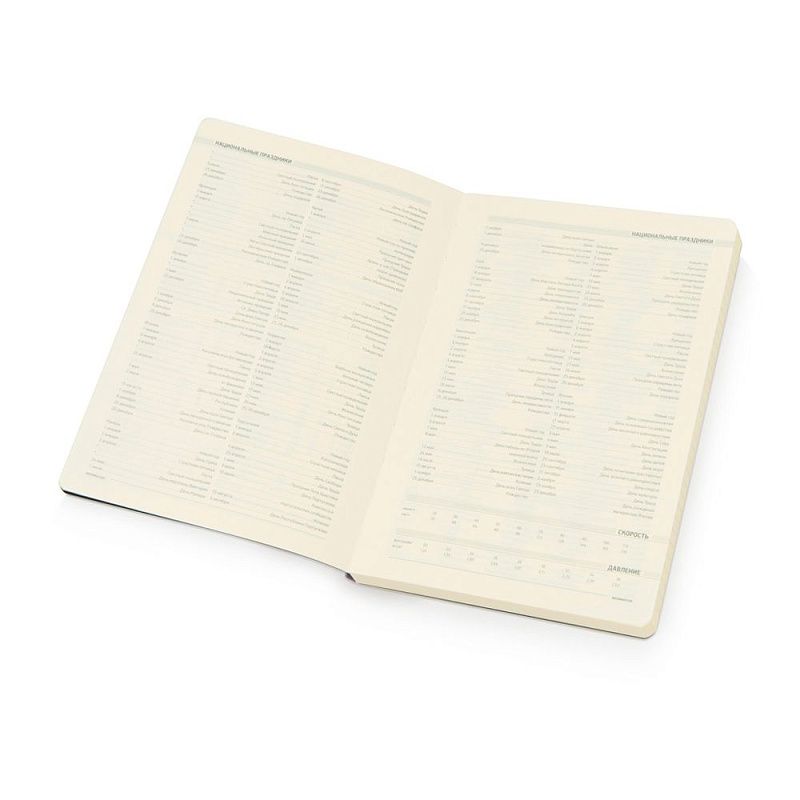 В ежедневнике «Megapolis Flex» есть полезная справочная информация и телефонная книга, а также страницы для записи идей, мыслей и составления рабочих планов. Для изготовления страниц используется качественный бежевый офсет повышенной плотности (70 г/кв м). Блок не привязан к конкретным датам – они указываются в выделенном поле вверху страницы. Тонированная бумага не дает глазам утомиться даже при длительной работе.