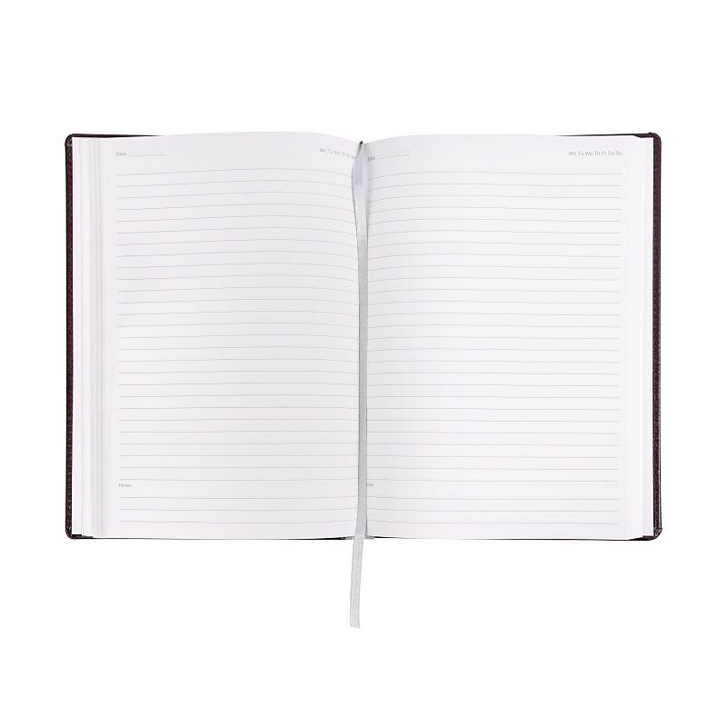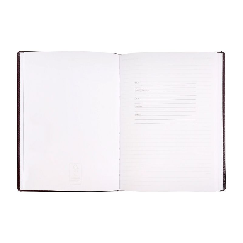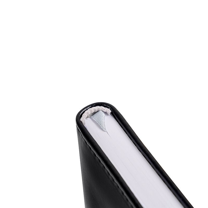 Форзацы белого цвета. Блок из белой гладкой FSC бумаги плотностью 70 гр., печать в 1 цвет - серый Pantone 404U. Шелковая закладка-ляссе серого цвета. Подходит под нанесение логотипа тиснением.