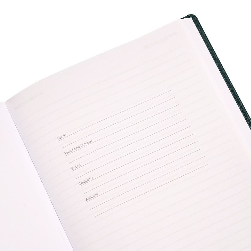 Форзацы белого цвета. Блок из белой гладкой FSC бумаги плотностью 70 гр., печать в 1 цвет - серый Pantone 404U. Шелковая закладка-ляссе серого цвета. Подходит под нанесение логотипа тиснением.