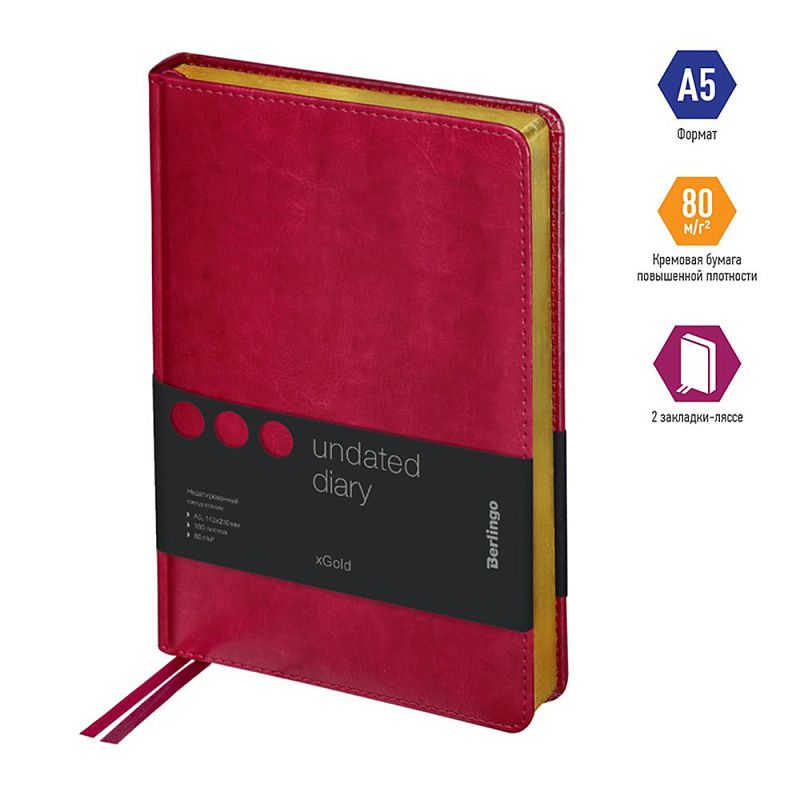 Ежедневник недатированный "xGold", А5, 320 страниц, фуксия